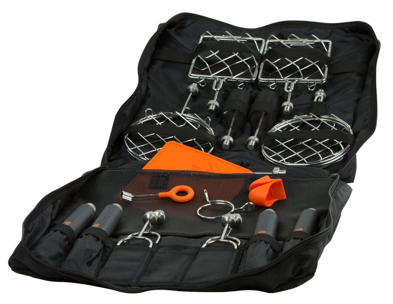 The Grub Stick Master Kit is the way to go for anyone looking to step up their campfire game. This kit comes with a total of four handles and many more assorted campfire cooking utensils, so all of your best friends can join you for fun around the fire pit. Everyone will enjoy the variety provided by the Grub Stick Master Kit. Not only will your innovative food creations taste amazing, you’ll also have a great time in the process because there are endless recipes to try! From colorful, sweet desserts to savory, skewered meats and vegetables, you’ll absolutely love tapping into your creative side with the Grub Stick Master Kit and its many campfire cooking utensils.